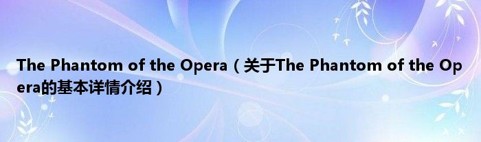 本文关于The Phantom of the Opera的基本详情介绍就讲解完毕,希望对大家有所帮助。