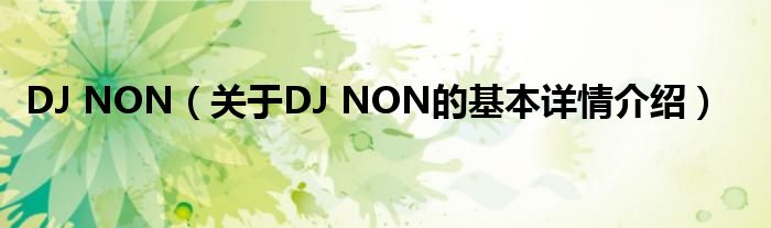 本文关于DJ NON的基本详情介绍就讲解完毕,希望对大家有所帮助。