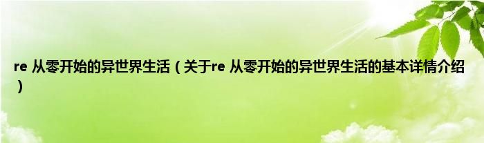 本文关于re 从零开始的异世界生活的基本详情介绍就讲解完毕,希望对大家有所帮助。