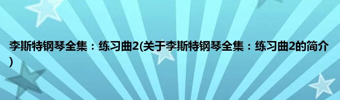 本文关于李斯特钢琴全集:练习曲2的简介就讲解完毕,希望对大家有所帮助。