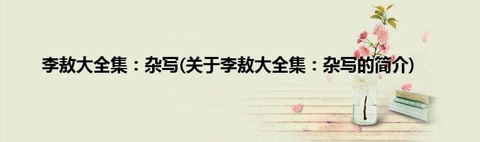 本文关于李敖大全集:杂写的简介就讲解完毕,希望对大家有所帮助。