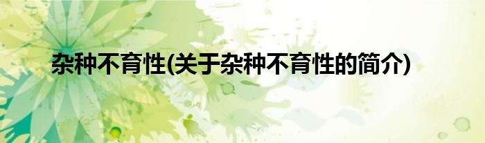 大家好,杂种不育性,关于杂种不育性的简介很多人还不知道,现在让我们一起来看看吧!