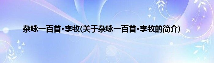 1、 《杂咏一百首·李牧》是宋朝诗人刘克庄的作品之一。
