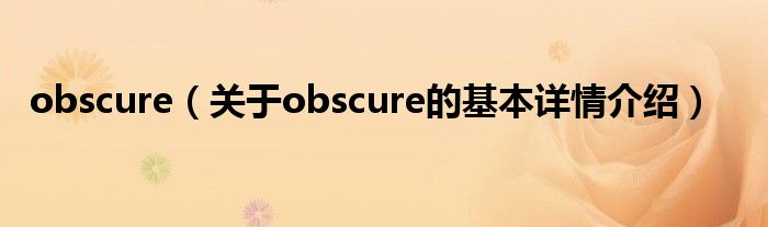 本文关于obscure的基本详情介绍就讲解完毕,希望对大家有所帮助。