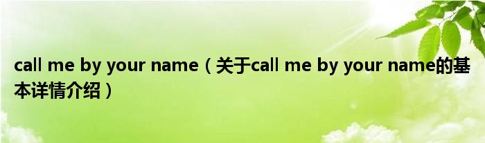 本文关于call me by your name的基本详情介绍就讲解完毕,希望对大家有所帮助。