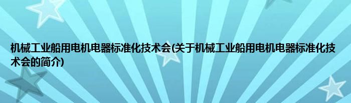 本文关于机械工业船用电机电器标准化技术会的简介就讲解完毕,希望对大家有所帮助。