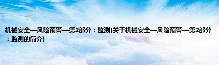 大家好,机械安全—风险预警—第2部分:监测,关于机械安全—风险预警—第2部分:监测的简介很多人还不知道,现在让我们一起来看看吧!