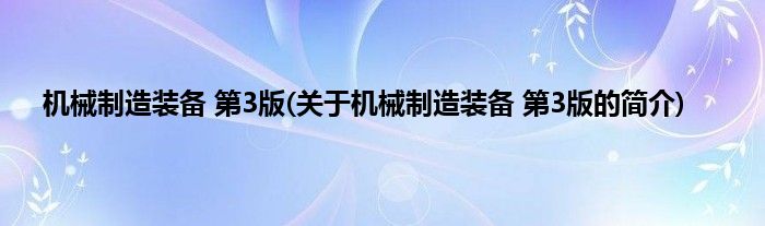 本文关于机械制造装备 第3版的简介就讲解完毕,希望对大家有所帮助。