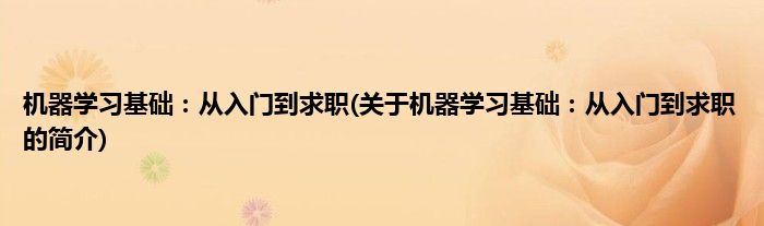 大家好,机器学习基础:从入门到求职,关于机器学习基础:从入门到求职的简介很多人还不知道,现在让我们一起来看看吧!