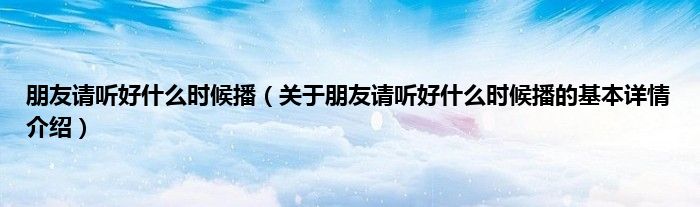 本文关于朋友请听好什么时候播的基本详情介绍就讲解完毕,希望对大家有所帮助。