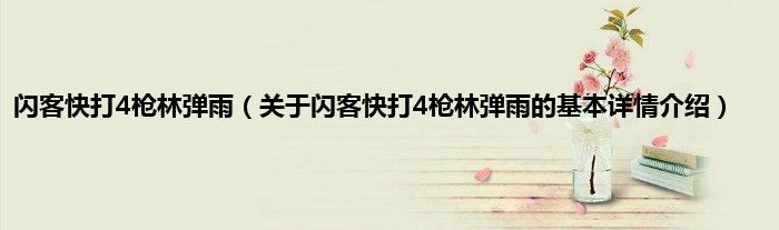 本文关于闪客快打4枪林弹雨的基本详情介绍就讲解完毕,希望对大家有所帮助。