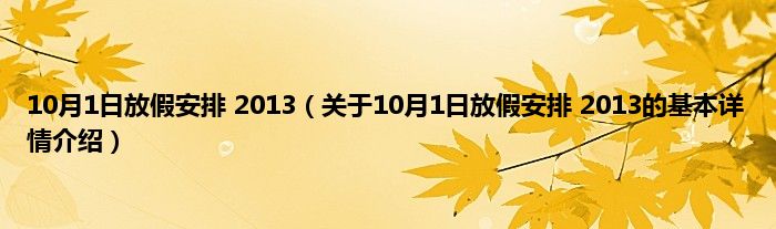 本文关于10月1日放假安排 2013的基本详情介绍就讲解完毕,希望对大家有所帮助。