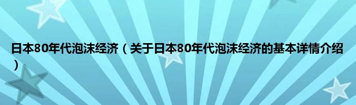 本文关于日本80年代泡沫经济的基本详情介绍就讲解完毕,希望对大家有所帮助。