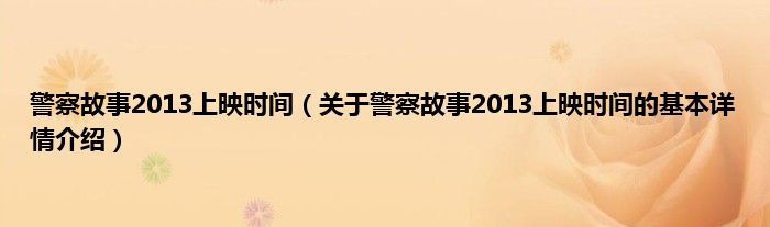 本文关于警察故事2013上映时间的基本详情介绍就讲解完毕,希望对大家有所帮助。