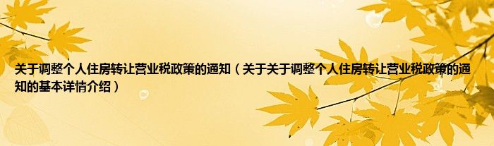 本文关于关于调整个人住房转让营业税政策的通知的基本详情介绍就讲解完毕,希望对大家有所帮助。