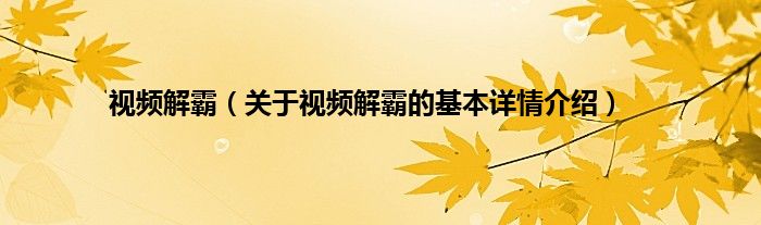 视频解霸(关于视频解霸的基本详情介绍)