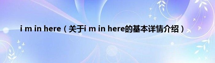 本文关于i m in here的基本详情介绍就讲解完毕,希望对大家有所帮助。