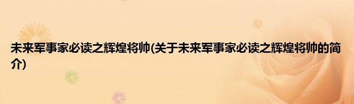 本文关于未来军事家必读之辉煌将帅的简介就讲解完毕,希望对大家有所帮助。