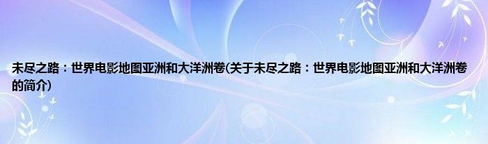 大家好,未尽之路:世界电影地图亚洲和大洋洲卷,关于未尽之路:世界电影地图亚洲和大洋洲卷的简介很多人还不知道,现在让我们一起来看看吧!