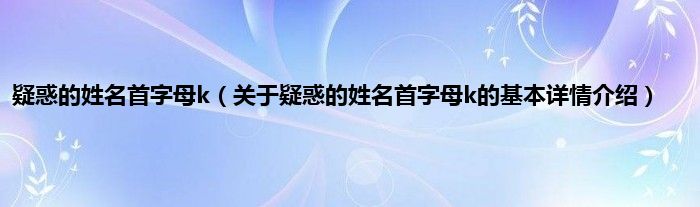 本文关于疑惑的姓名首字母k的基本详情介绍就讲解完毕,希望对大家有所帮助。