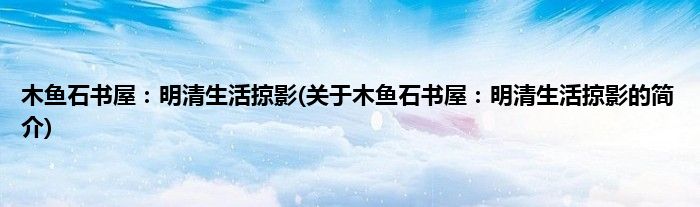 本文关于木鱼石书屋:明清生活掠影的简介就讲解完毕,希望对大家有所帮助。