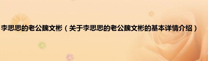 本文关于李思思的老公魏文彬的基本详情介绍就讲解完毕,希望对大家有所帮助。