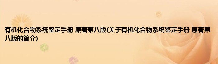 本文关于有机化合物系统鉴定手册 原著第八版的简介就讲解完毕,希望对大家有所帮助。