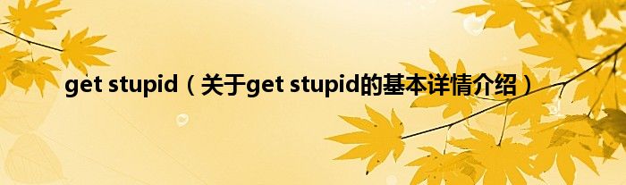 本文关于get stupid的基本详情介绍就讲解完毕,希望对大家有所帮助。