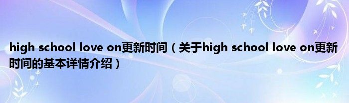 本文关于high school love on更新时间的基本详情介绍就讲解完毕,希望对大家有所帮助。