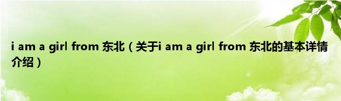 本文关于i am a girl from 东北的基本详情介绍就讲解完毕,希望对大家有所帮助。