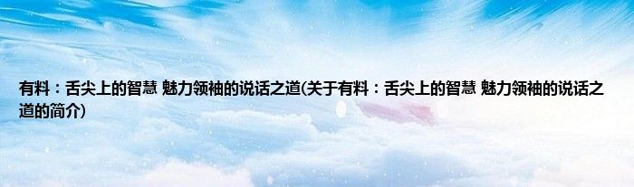 本文关于有料:舌尖上的智慧,魅力领袖的说话之道的简介就讲解完毕,希望对大家有所帮助。