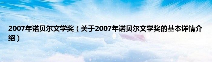 本文关于2007年诺贝尔文学奖的基本详情介绍就讲解完毕,希望对大家有所帮助。