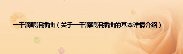 一千滴眼泪插曲(关于一千滴眼泪插曲的基本详情介绍)