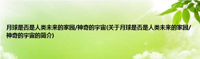本文关于月球是否是人类未来的家园/神奇的宇宙的简介就讲解完毕,希望对大家有所帮助。