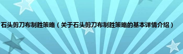 本文关于石头剪刀布制胜策略的基本详情介绍就讲解完毕,希望对大家有所帮助。