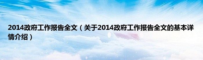 2014政府工作报告全文(关于2014政府工作报告全文的基本详情介绍)