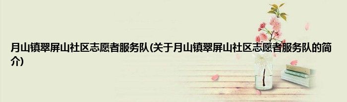 本文关于月山镇翠屏山社区志愿者服务队的简介就讲解完毕,希望对大家有所帮助。