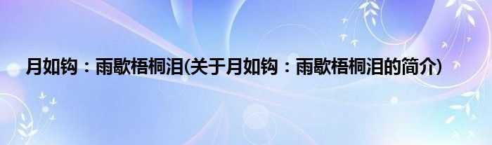 本文关于月如钩:雨歇梧桐泪的简介就讲解完毕,希望对大家有所帮助。