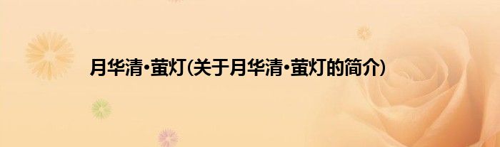 大家好,月华清·萤灯,关于月华清·萤灯的简介很多人还不知道,现在让我们一起来看看吧!