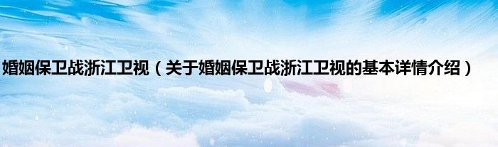 本文关于婚姻保卫战浙江卫视的基本详情介绍就讲解完毕,希望对大家有所帮助。