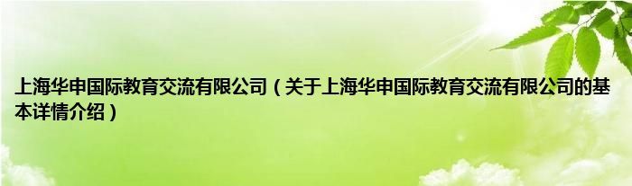 本文关于上海华申国际教育交流有限公司的基本详情介绍就讲解完毕,希望对大家有所帮助。