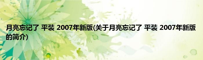 本文关于月亮忘记了 平装 2007年新版的简介就讲解完毕,希望对大家有所帮助。