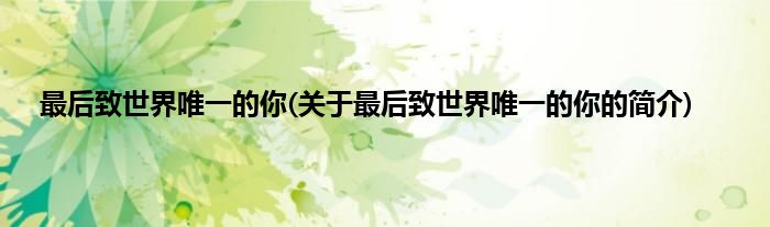 本文关于最后致世界唯一的你的简介就讲解完毕,希望对大家有所帮助。