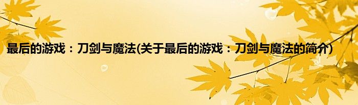 最后的游戏:刀剑与魔法(关于最后的游戏:刀剑与魔法的简介)