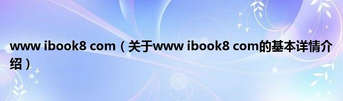 本文关于www ibook8 com的基本详情介绍就讲解完毕,希望对大家有所帮助。