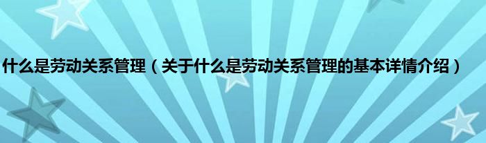 本文关于什么是劳动关系管理的基本详情介绍就讲解完毕,希望对大家有所帮助。