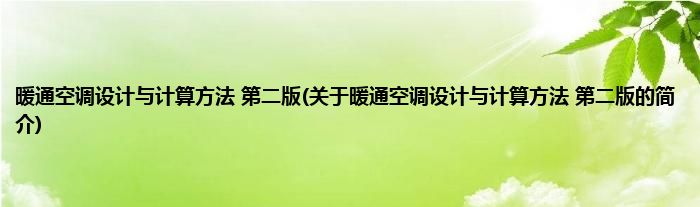 大家好,暖通空调设计与计算方法 第二版,关于暖通空调设计与计算方法 第二版的简介很多人还不知道,现在让我们一起来看看吧!