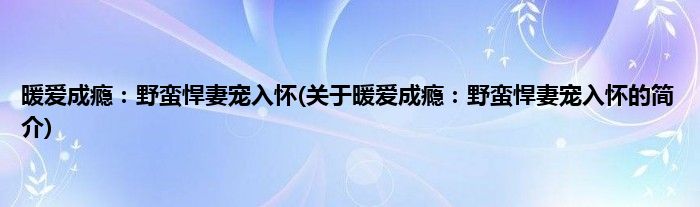 本文关于暖爱成瘾:野蛮悍妻宠入怀的简介就讲解完毕,希望对大家有所帮助。