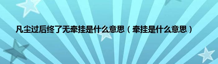 以上就是【凡尘过后终了无牵挂是什么意思,牵挂是什么意思】相关内容。