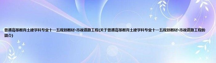 1、 《普通高等教育土建学科专业十一五规划教材·市政道路工程》是中国建筑工业出版社出版的图书,ISBN是9787112094196。